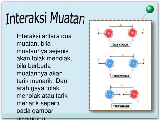 Interaksi antar muatan listrik yang akan tolak menolak terjadi pada a.pengaris plasstik yg digosok dgn kain wol terhadap ebonik yg digosok dgn kain wol b.pengaris plastik yg digosok dgn kainwol terhadap kaca yg digosok degn kain sutra c.ebonit yg digosok dgn kain wol terhadap benda lain yg bermuatan(+) d.ebonit yg digosok dgn kain wol terhadap kaca yg digosok dgn kain. Interaksi antar muatan listrik alokasi waktu : K = konstanta = 1/4πε o = 9 x 10 9 n.m 2 /c 2. Efek listrik statis dapat terjadi karena adanya perpindahan elektron. 7 rows sub materi : Pada dasarnya muatan listrik dikaitkan dengan partikel yang seukuran atom, seperti elektron dan proton. Hukum coulomb besarnya gaya listrik statis ( tarik menarik atau tolak menolak ). Berdasarkan table di atas, wol mudah memberi elektron ke penggaris plastik sehingga penggaris plastic bermuatan negatif dan wol bermuatan positif. Muatan listrik akan dibagi menjadi.